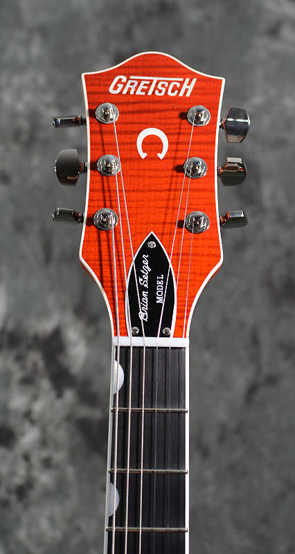 Gretsch is thrilled to be a part of Setzer's pivotal legacy with the G6120TFM Brian Setzer Signature Nashville Hollow Body with Bigsby and Flame Maple, a truly rocking instrument that boasts as much swagger as the showman who inspired it.