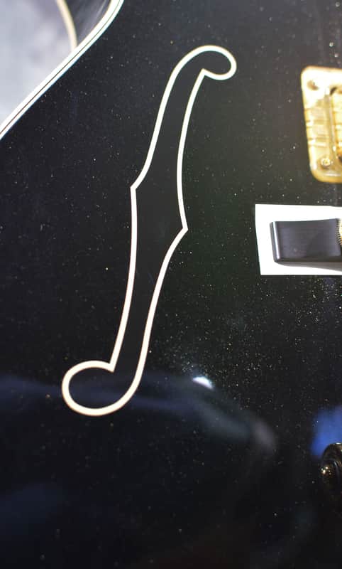 Dressed in a Magic Black finish, this musical treasure is decked in classic Gretsch style - shiny gold G-arrow control knobs and matching hardware, aged white binding with black and white purfling, and a gold plexi pickguard with black Gretsch logo and signpost graphic featuring Wariner's signature. Blocked F-Holes for that feedback buster function and that sleek look.