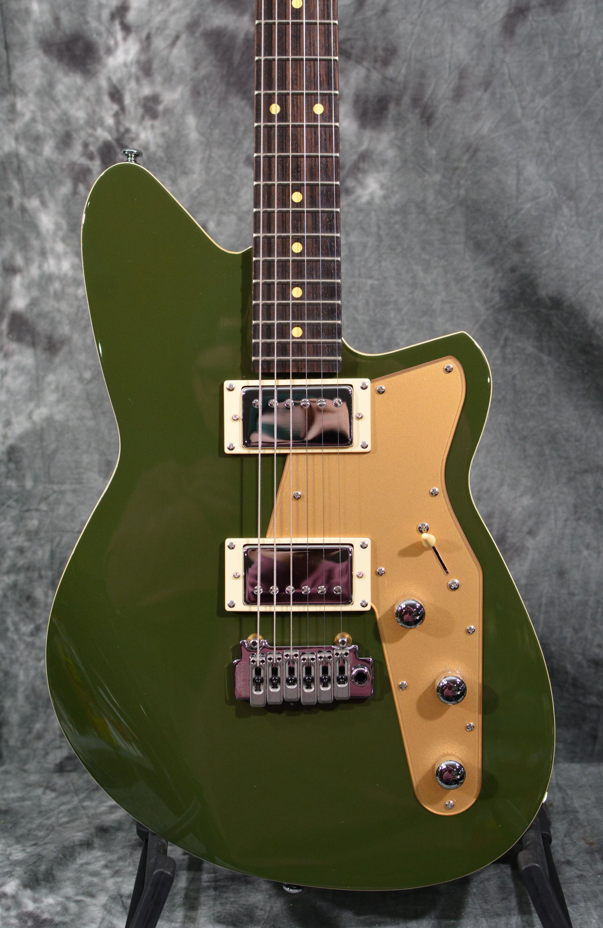 A modern rock dynamo that combines humbucker power with bolt-on scale clarity. Now available on the classic Reverend Jetstream platform! Put together big and clear rock tones, warm and round cleans, and even some percussive twang and girth. A Wilkinson WVS50 IIK Tremolo in the bridge rounds out the package and you have a guitar that takes you to the edge.